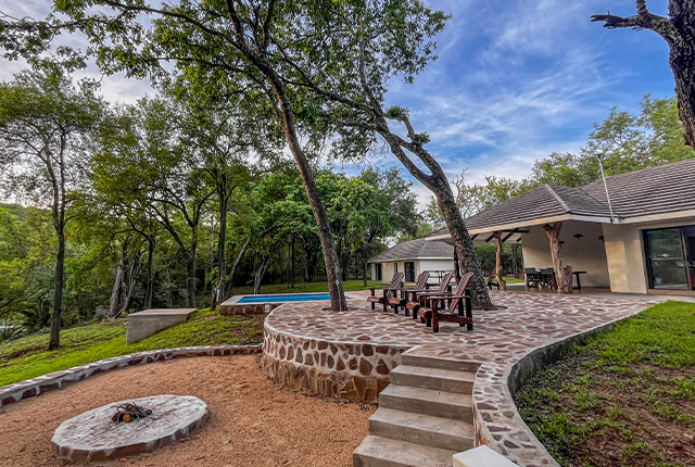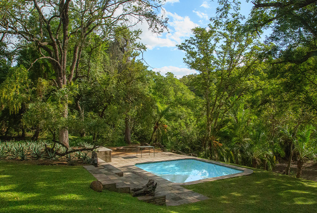 Listen for the Narina Trogon or watch African Finfoot from your private pool overlooking the river.