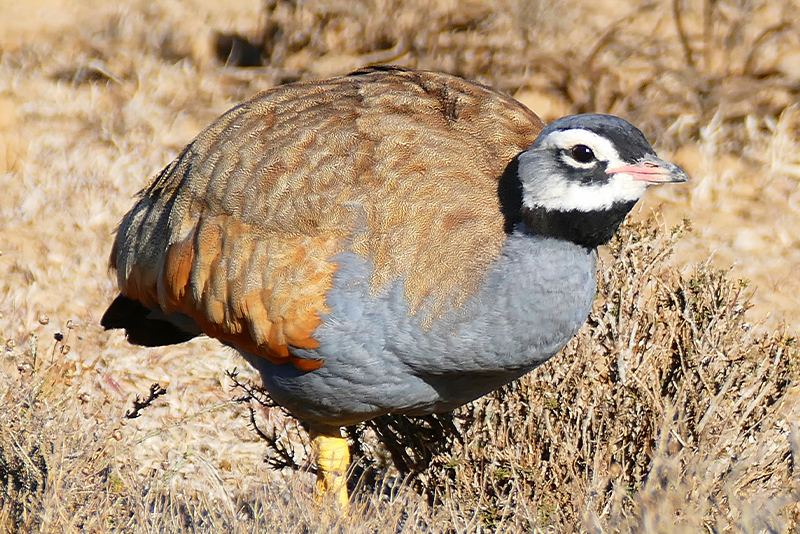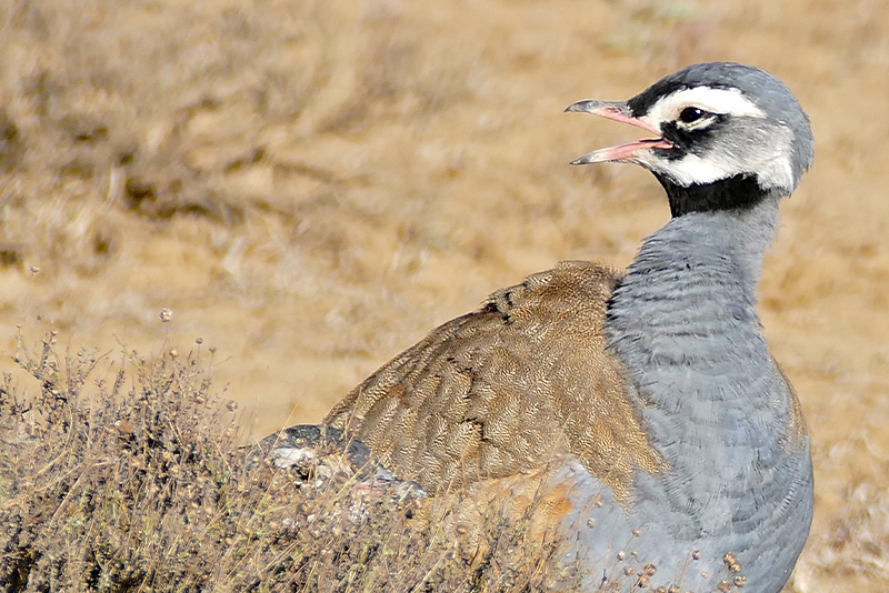 Any flat, healthy grassland should give you a good chance to find Blue Korhaan. Reliable areas include Devon Grasslands, Vrede Grasslands and areas around Harrismith.